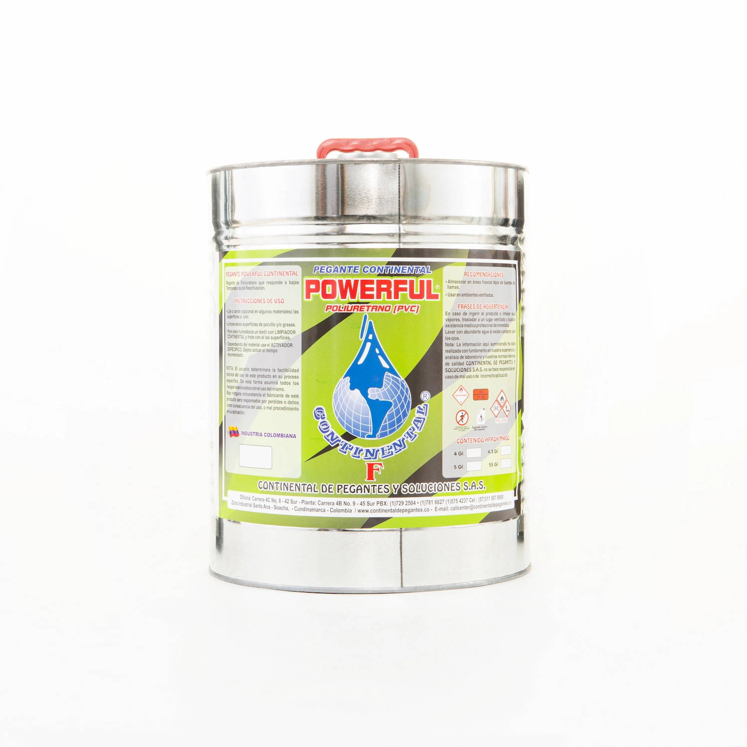 El POWERFUL tiene una temperatura de reactivación más baja que los Pegantes de PU convencionales, disminuyendo así el inconveniente por efecto de altas temperaturas de: desestabilidad dimensional de los materiales Sintéticos; Estabilidad cromática de las mismos. Así misma disminución de energía. Debido al tipo de Resina de PU utilizada en la fabricación del POWERFUL, este adhesivo presenta una alta Adhesión especifica a materiales de difícil unión (PA,PU,EVA, NYLON, TR con alto contenido de Stireno) permitiendo que su operación de pegue sea más efectiva. Presenta un tiempo abierto un poco mas largo en frio, que favorece las labores de pegue de BANNER, CARPAS, etc.